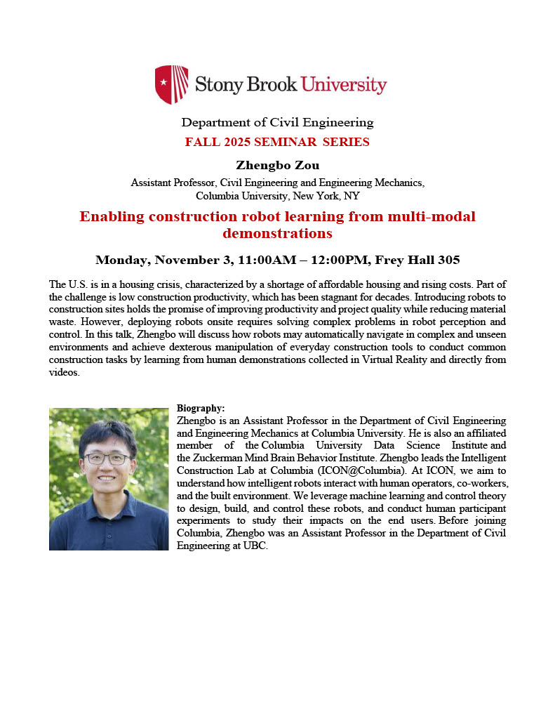 "Enabling construction robot learning from multi-modal demonstrations", Zhengbo Zou, PhD